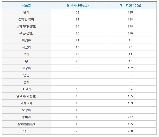 그런 이유로 다이어트 시 GI지수(혈당지수)가